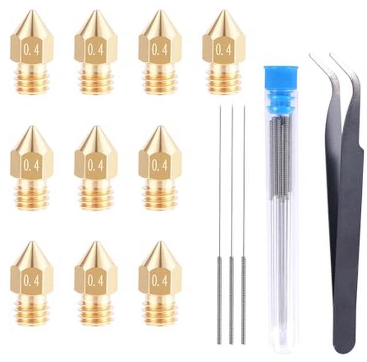 Set vervangende messing of hardened steel nozzles in meerdere maten. Essentieel verbruiksmateriaal.