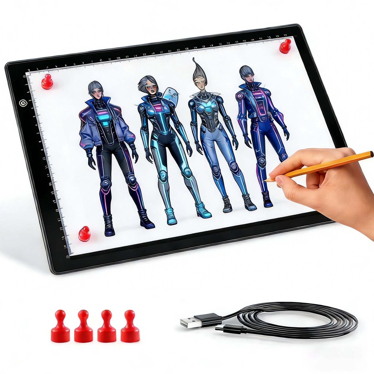 LED-tekenlamp voor het overtrekken en nauwkeurig doortekenen van manga-schetsen. Regelbare helderheid.
