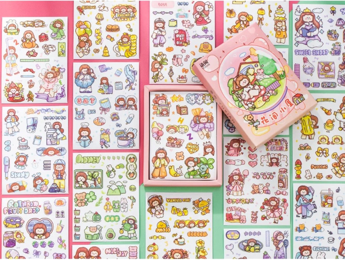 Grote set waterproof vinyl-stickers met anime-kunstwerken. Voor laptop, waterfles, agenda en meer.