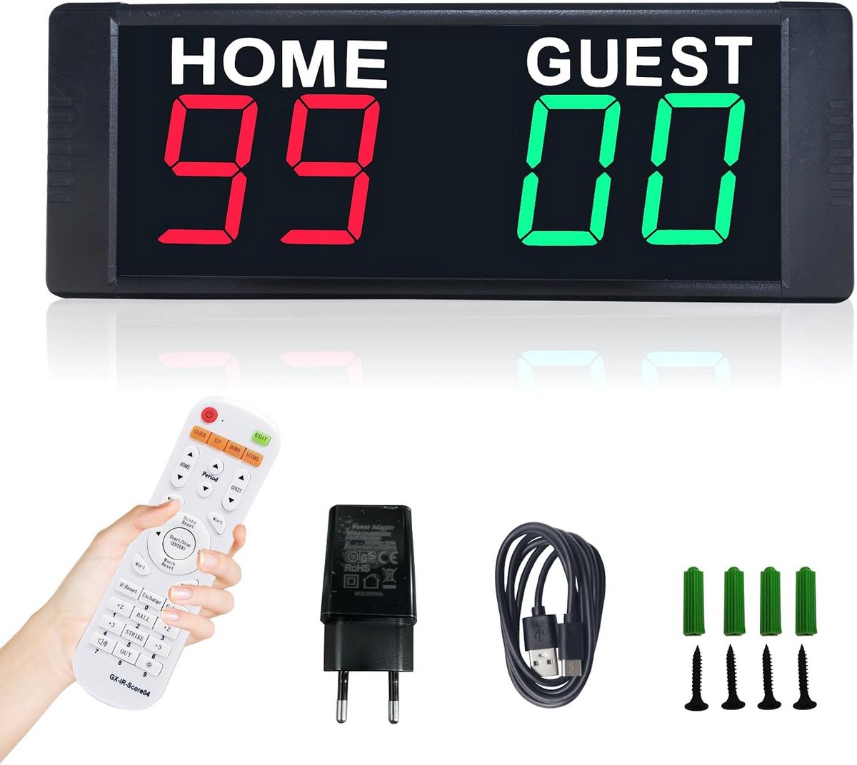 Een draagbare digitale scoreklok geeft amateurteams een professionele sfeer tijdens vriendschappelijke wedstrijden en competities. Eenvoudig te bedienen op afstand en goed leesbaar op het court.