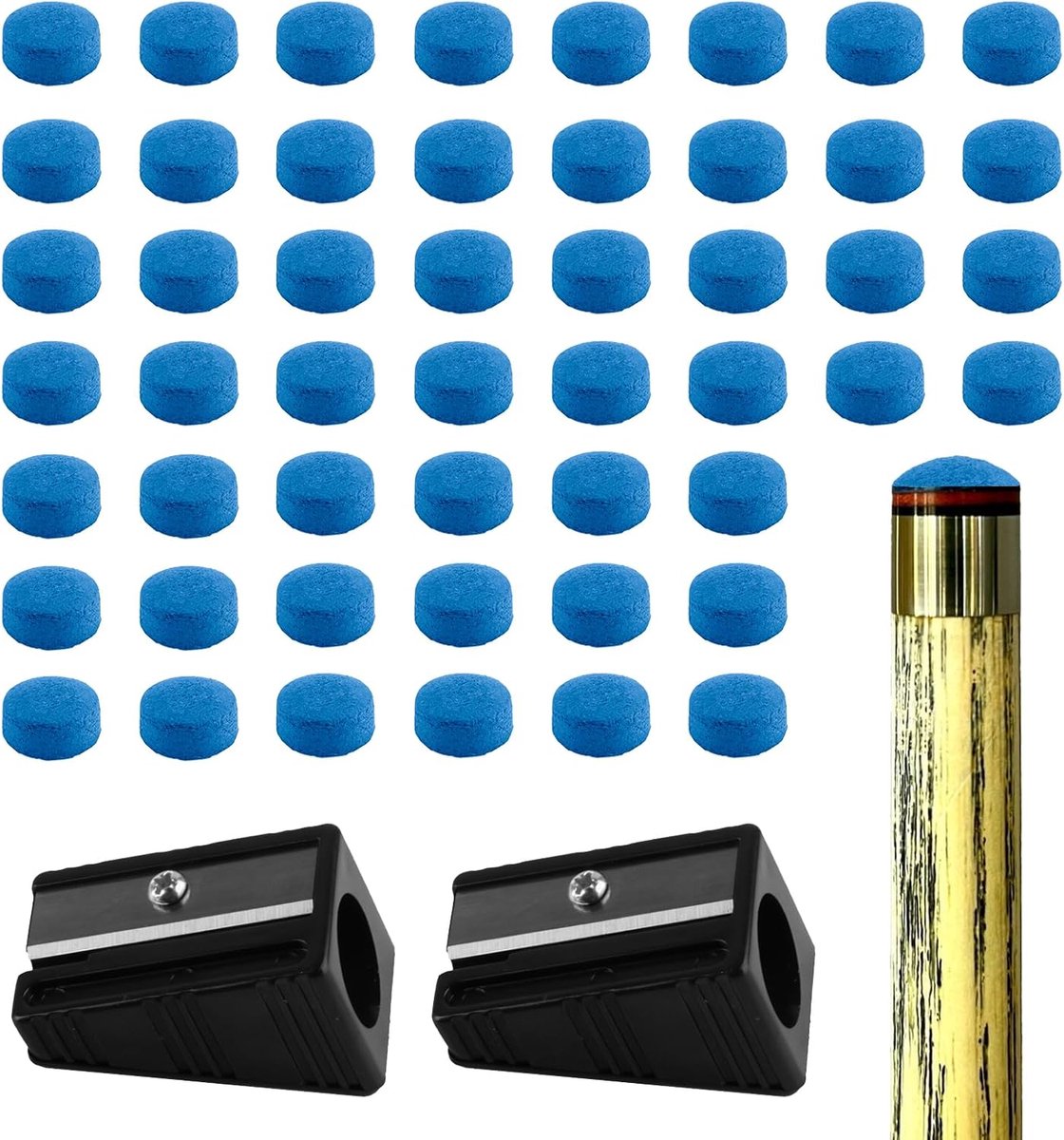 Een set vervangende lederen quetippen in verschillende hardheidsgraden – soft, medium en hard – geeft de speler controle over de spin en impact bij elke stoot. Inclusief tip tool voor afschuinen, opruwen en plakken.