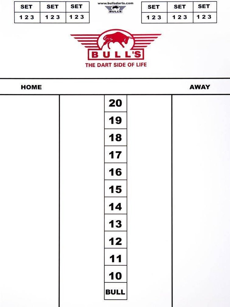 Lamineerbare checkoutkaarten met alle uittrekschema's van 170 tot 2 geven dartspelers in één oogopslag de optimale finishes. Ideaal voor beginners die checkouts leren en voor gevorderden als snelle geheugensteun.