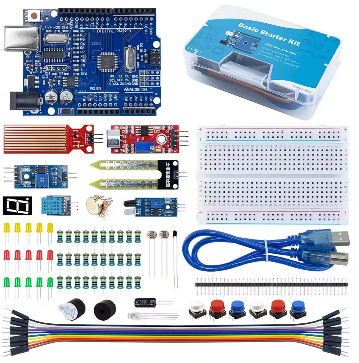 Officiële Arduino Uno R3 starterkit met breadboard, jumpers, sensoren en projectboek. Ideaal voor beginners.