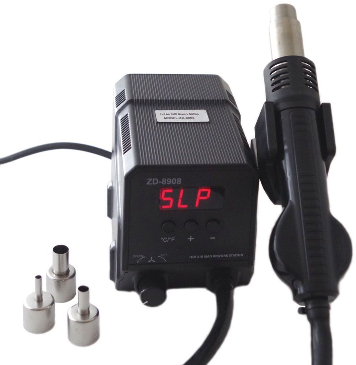 Hetelucht station voor het oplossen en plaatsen van SMD-componenten. Met regelbare temperatuur en luchtdebiet.