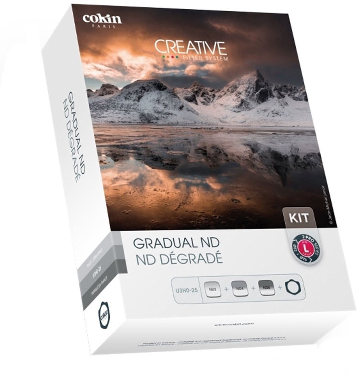 Set van grijsfilters (ND8, ND64, ND1000) voor lange sluitertijden bij fel licht
