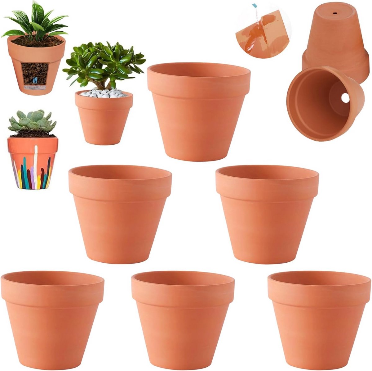 Terracotta potten zijn de klassieke keuze voor kamerplanten: poreus materiaal dat overtollig vocht laat verdampen en wortels laat ademen. Een set van drie maten geeft je direct een stijlvolle collectie.