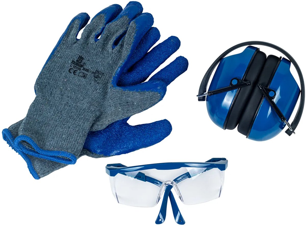 Complete persoonlijke beschermingsset voor veilig klussen: veiligheidsbril, handschoenen en oorkappen