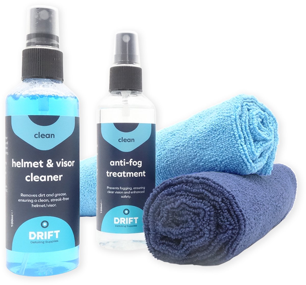 Een troebel of bekrast vizier is gevaarlijk bij tegenlicht en avondrijden. Een reinigingsset met antistatische spray, microvezeldoek en anti-fog coating houdt je vizier spiegelglad en zorgt voor optimaal zicht.