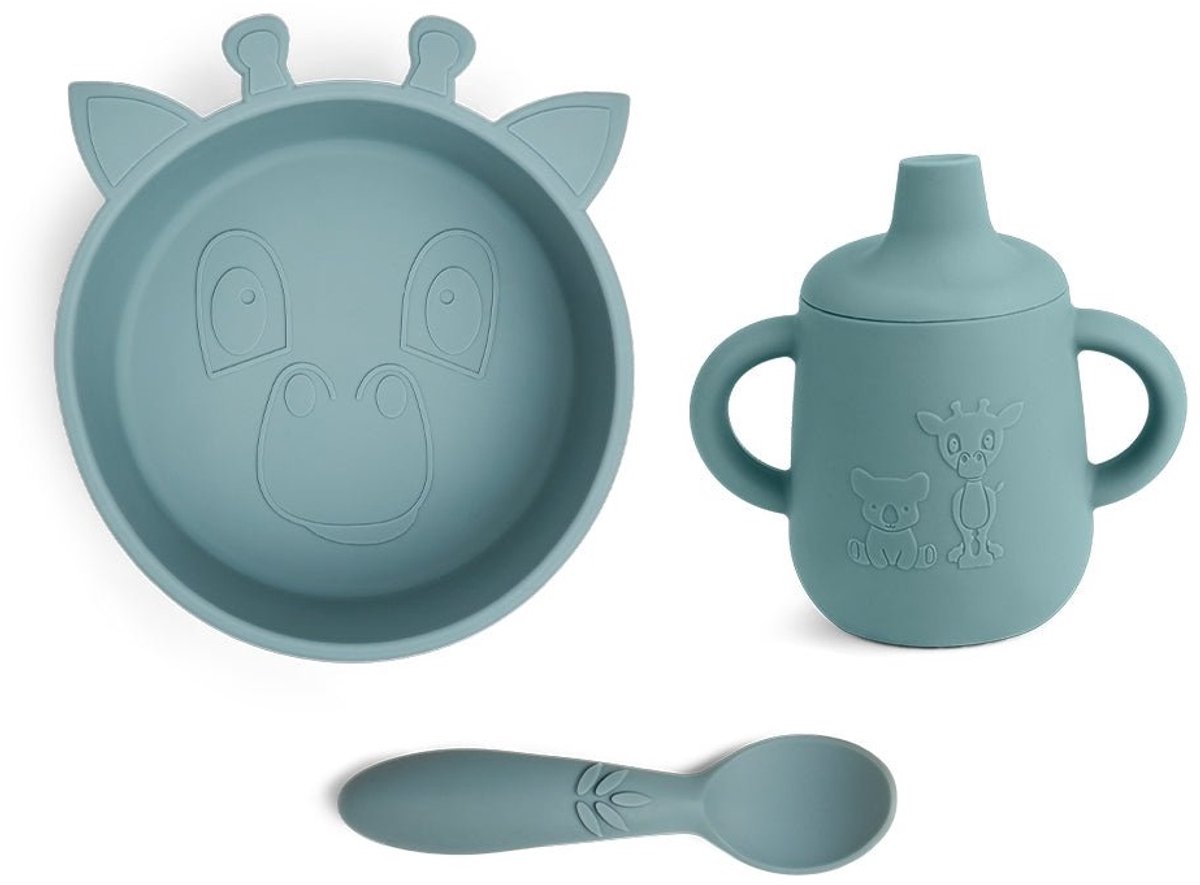 Een set baby-eetgerei van bamboe of silicone is vrij van BPA, makkelijk te reinigen en comfortabel voor kleine handjes. Inclusief bord met zuignap, lepeltjes en beker met tuitje – voor de overgang van borst of fles naar vaste voeding.