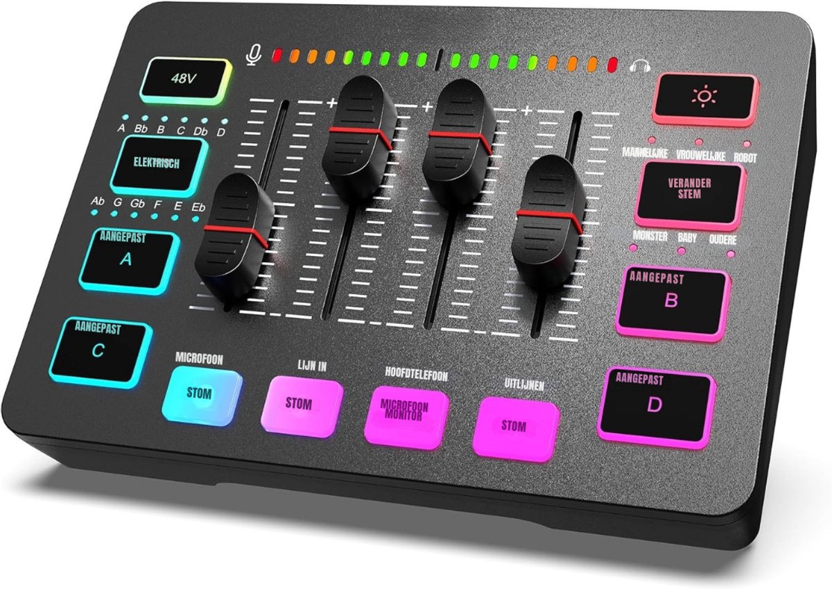De GoXLR Mini combineert een audio-interface, mixer en geluidspads in één compact apparaat. Populair bij streamers en podcasters voor realtime volumeregeling, achtergrondgeluid en mixes tijdens live opnames.