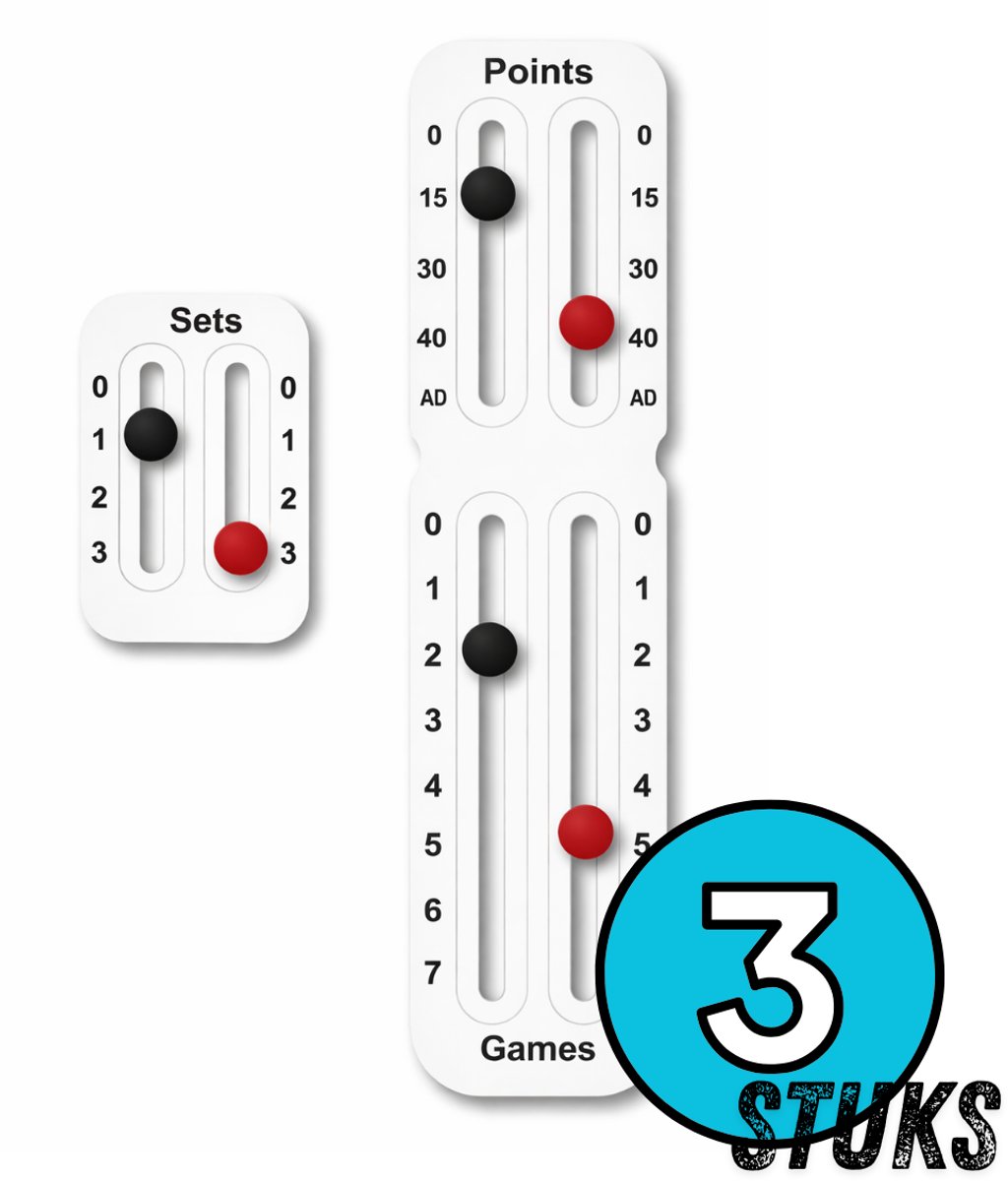 Een draagbaar scoreboard met magnetische scores en zetteller maakt het bijhouden van sets, games en punten eenvoudig op de baan – ideaal voor recreatief spelers en trainingen.