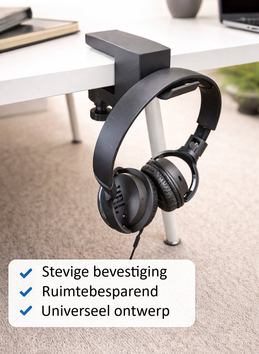 Stijlvolle standaard of haak voor het opbergen van de koptelefoon naast het scherm