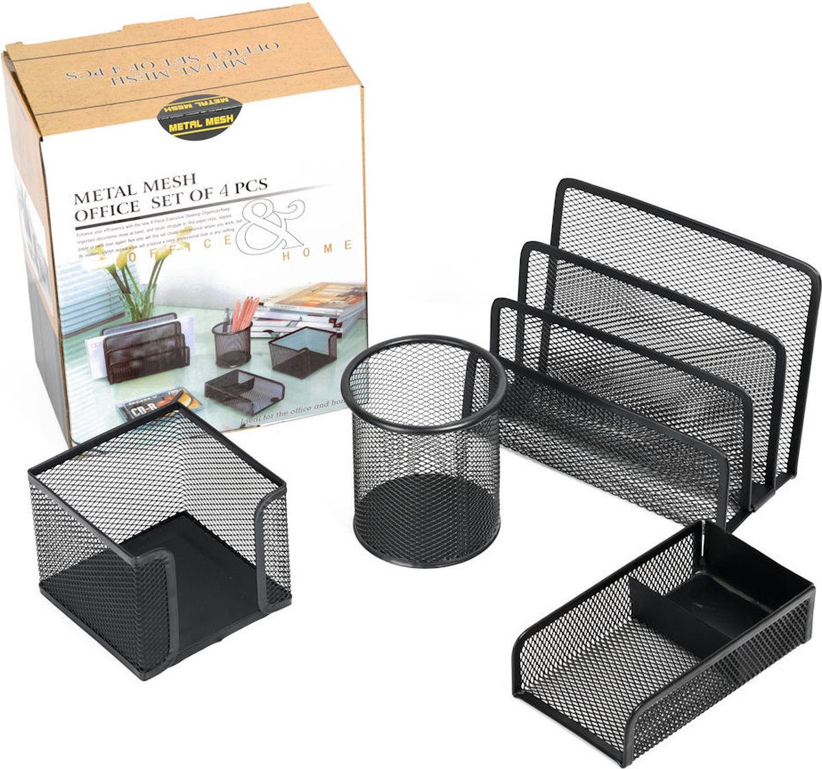 Stijlvolle set van pennenhouder, bakjes en opbergdoosjes voor een opgeruimd bureau
