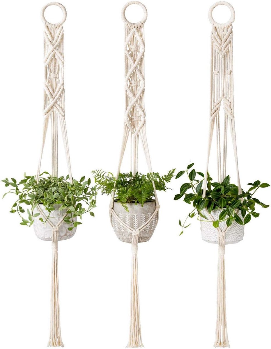 Handgemaakte macramé plantenhanger voor het ophangen van potten en planten