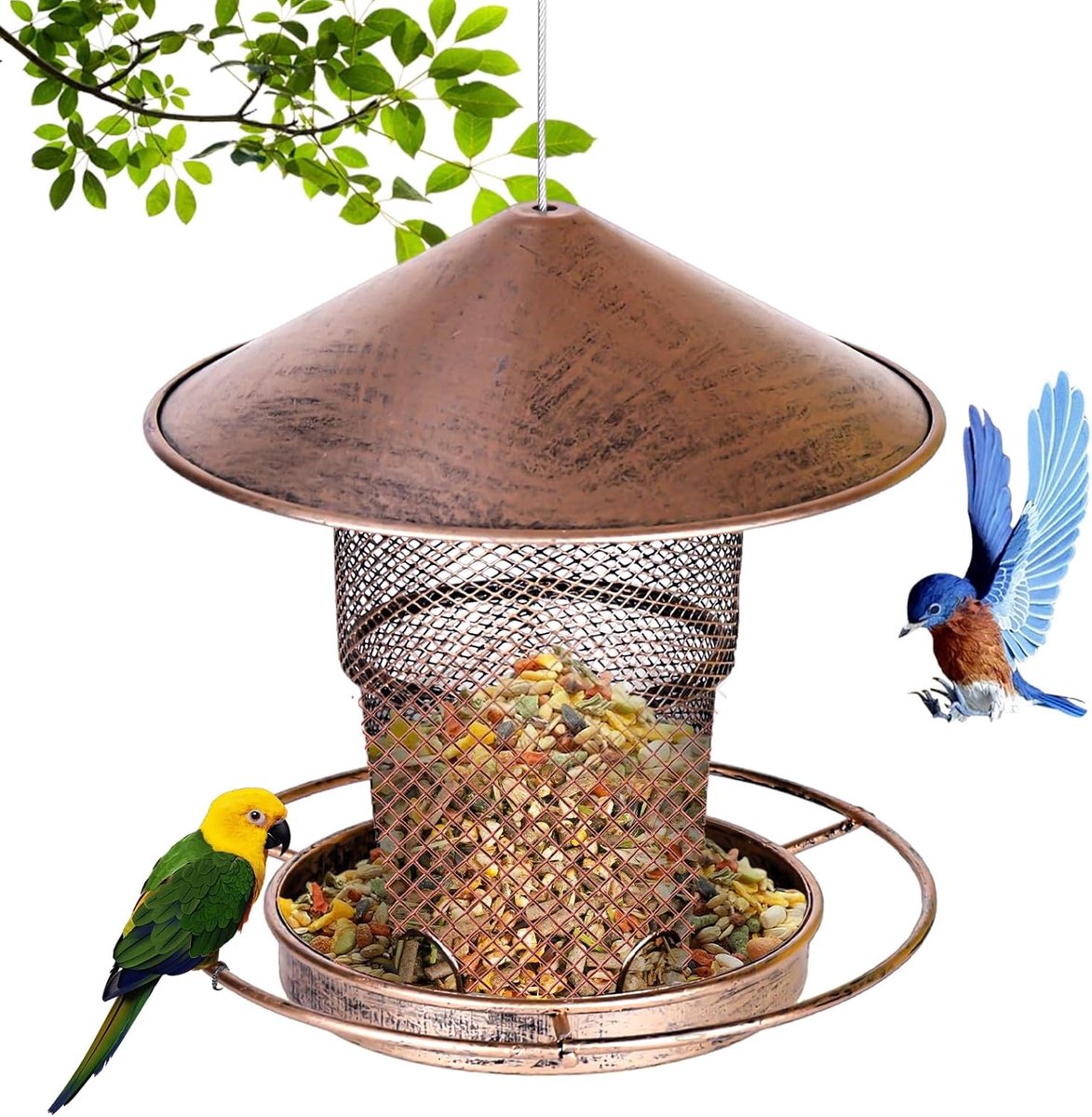 Houten vogelvoederhuisje of keramieken vogelbadje voor in de tuin