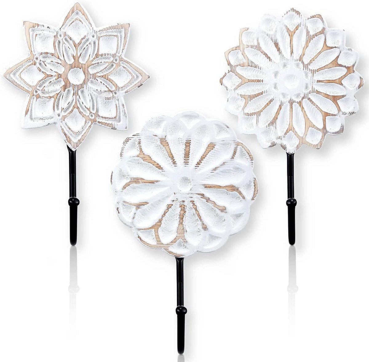 Rustieke wandhaken in verweerde houtlook — de perfecte brocante toets in hal of keuken.