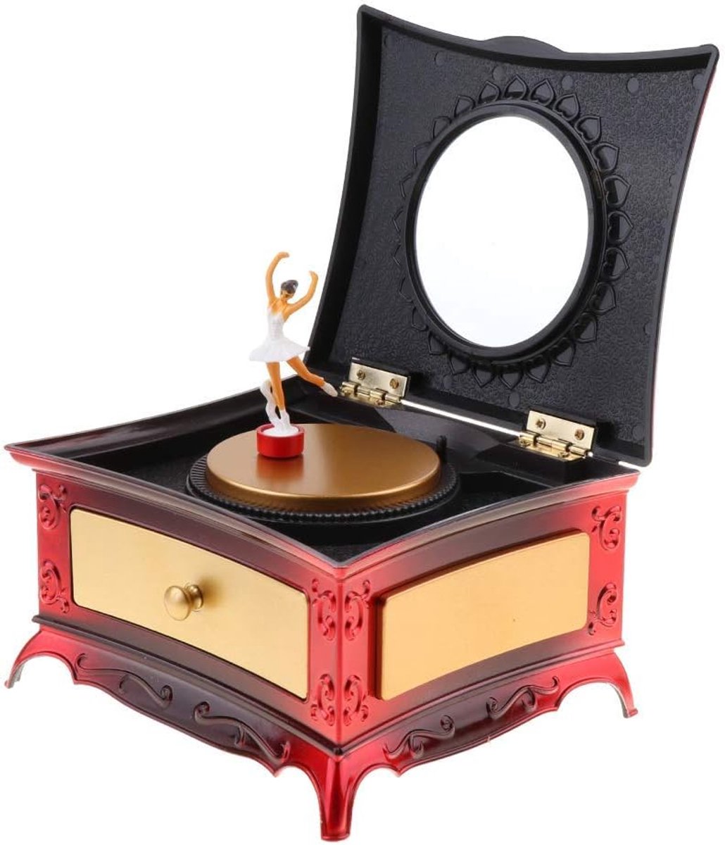 Nostalgische muziekdoos met draaiend figuurtje — ideaal voor het bewaren van sieraden met een vleugje magie.