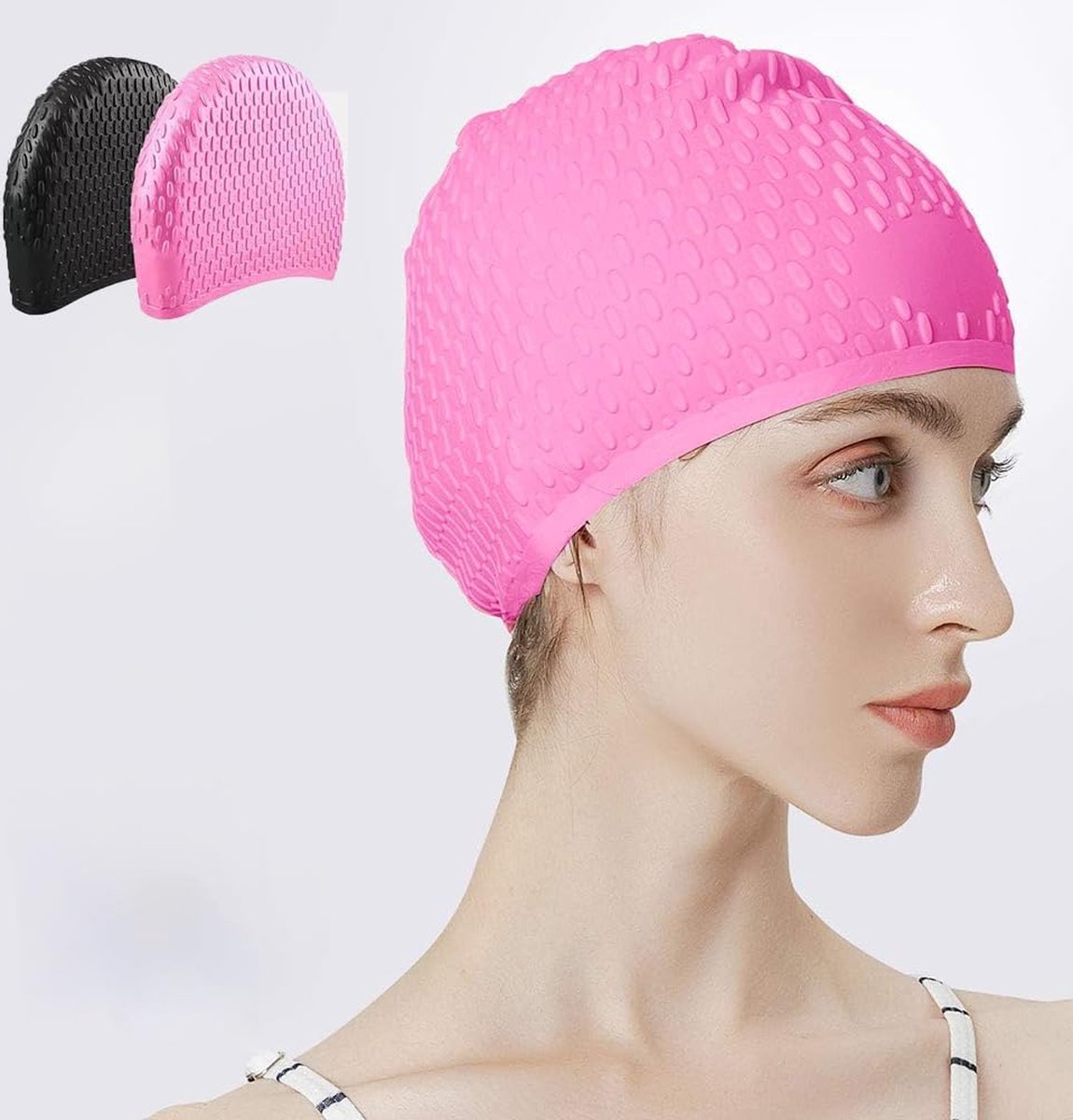 Een siliconen badmuts beschermt je haar tegen chloor en zout water, vermindert weerstand in het water en houdt je zwembril stevig op zijn plek. Comfortabeler en duurzamer dan latex varianten, en ideaal voor regelmatige gebruik.